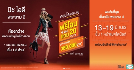 เสนาดีเวลลอปเม้นท์ จัดบูธ นิช ไอดี พระราม2 ที่ เซ็นทรัลพระราม 2 นิช ไอดี พระราม2" คอนโดพร้อมอยู่ ใกล้ทางด่วน สไตล์คอนโด Low Rise สูง 8 ชั้น 3 อาคาร ตั้งอยู่ห่างจากถนนพระราม 2 ประมาณ 300 ม. เพียงจองในงาน รับโปรโมชั่นพิเศษไปเลย!!! ฟรีโอน ของแถม 20 รายการ หุ่นยนต์ดูดฝุ่นอัจฉริยะ จองเพียง 5,000 บาท 13-19 มิ.ย. นี้ พบกันที่บูธ เซ็นทรัลพระราม 2 ชั้น 1 หน้าแมคโดนัลด์ เริ่ม 1.8 ล้านบาท*