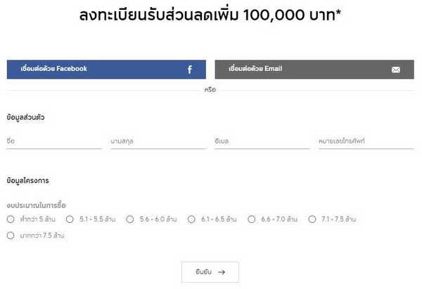 ลงทะเบียนรับส่วนลดเพิ่ม 100,000 บาท*