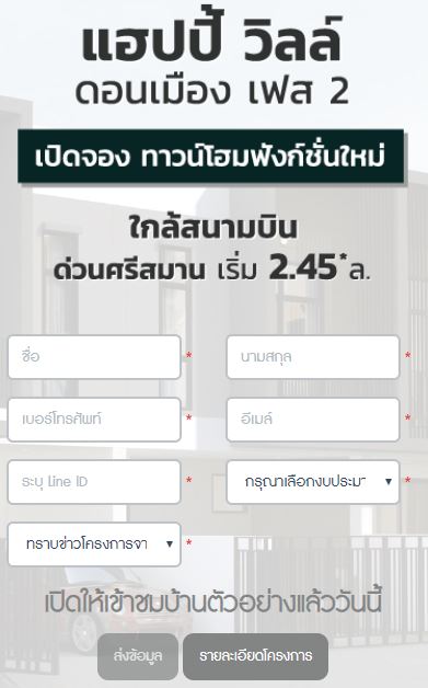 เปิดจอง "แฮปปี้ วิลล์ ดอนเมือง เฟส 2" ทาวน์โฮมฟังก์ชั่นใหม่ จาก Infinite Real Estate โครงการได้มีการปรับแบบบ้านใหม่ให้มีฟังก์ชันการใช้งานที่ลงตัวมากขึ้น ทำเลใกล้สนามบิน และทางด่วนศรีสมาน ชมบ้านตัวอย่างได้แล้ววันนี้ เริ่ม 2.45 ล้านบาท*