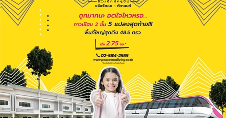 พีซ แอนด์ ลีฟวิ่ง จัดโปร ถูกมากนะ อดใจไหวเหรอ ทาวน์โฮมทำเลใกล้แจ้งวัฒนะ "ดิ เอ็กซ์คลูซีฟ แจ้งวัฒนะ - ติวานนท์" ทาวน์โฮม 2 ชั้น คุณภาพสูง 3 ห้องนอน 2 ห้องน้ำ ใกล้ทางด่วน & รถไฟฟ้า พร้อมคลับเฮ้าส์ สระว่ายน้ำ สวนขนาดใหญ่ พร้อมรับโปรโมชั่นลดกระหน่ำ 5 หลังสุดท้ายเท่านั้น !! ราคาเริ่ม 2.75 ล้านบาท*
