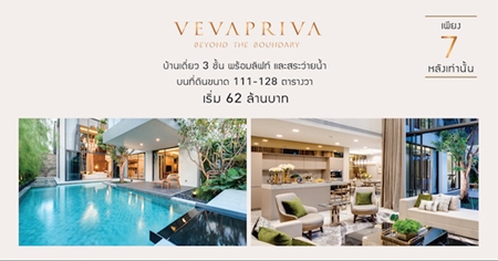 "วีว่า พรีวา เอกมัย-รามอินทรา" บ้านเดี่ยว 3 ชั้น บนพื้นที่ใจกลางเมือง สัมผัสชีวิตใกล้ธรรมชาติ สไตล์ New Modern Luxury ที่ออกแบบให้มีเอกลักษณ์เฉพาะ สะท้อนความหรูหราด้วยวัสดุมาตรฐานระดับพรีเมี่ยม และเทคโนโลยีสมัยใหม่ เพียบพร้อมด้วยความเหนือระดับในทุกๆ ด้านและทุกรายละเอียด พร้อมมอบความเป็นส่วนตัวบนทำเลที่ดีที่สุด เพียง 7 หลัง เท่านั้นที่คุณจะได้ครอบครอง เริ่ม 62 ล้านบาท*