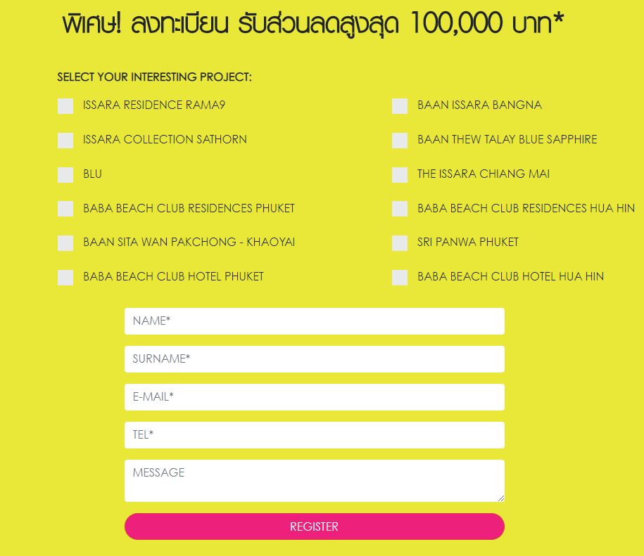 - ลงทะเบียนวันนี้ รับส่วนลดสูงสุด 100,000 บาท*
