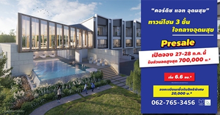 พีซ แอนด์ ลีฟวิ่ง เตรียมเปิดจอง ทาวน์โฮม 3 ชั้นใหม่ "คอร์ดิซ แอท อุดมสุข" ทาวน์โฮม 3 ชั้น สไตล์โมเดิร์น พื้นที่เริ่มต้น 22.8 ตร.ว. พื้นที่ใช้สอย 200 ตร.ม.* พร้อมสวน ฟิตเนส และสระว่ายน้ำสุดหรู พร้อมเชื่อมต่อทุกเส้นทางสู่ใจกลางเมือง เพียง 5 นาทีถึง BTS อุดมสุข พบกัน 27 - 28 กรกฎาคม 2562 นี้ ราคาเริ่ม 6.6 ล้านบาท*