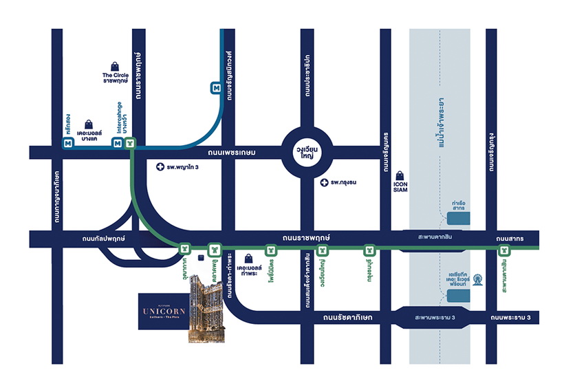คลิกเพื่อดูแผนที่โครงการอัลติจูด ยูนิคอร์น สาทร-ท่าพระ