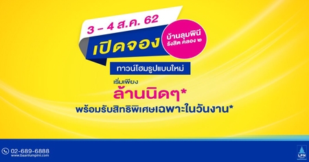 ลุมพินี เปิดจอง ทาวน์โฮมรูปแบบใหม่ ติดถนนรังสิต-นครนายก บ้านลุมพินี ทาวน์วิลล์ รังสิต - คลอง 2 (เฟส 2) ทาวน์โฮมชั้นเดี่ยว 1 ห้องนอน 1 ห้องอเนกประสงค์ 1 ห้องน้ำ จอดรถได้ 1 คัน ขนาดที่ดิน 16.2 ตารางวา พื้นที่ใช้สอยประมาณ 65 ตร.ม. มีส่วนเตรียมอาหาร ส่วนกลางครบครัน สระว่ายน้ำ และสวนหย่อมสำหรับพักผ่อนโปรโมชั่นพิเศษรับส่วนลดสูงสุด 300,000 บาท*ห้องโปรราคา 999,000 บาท จำนวนจำกัดเปิดจอง 3-4 สิงหาคม 2562 นี้ราคาเริ่ม 1.17 ล้านบาท*
