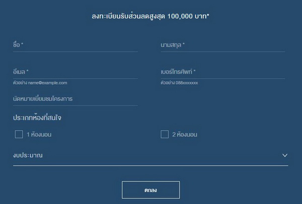 ลงทะเบียนรับส่วนลด 100,000 บาท
