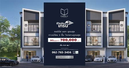 พบกับ โครงการทาวน์โฮมใหม่ "คอร์ดิซ แอท อุดมสุข"Luxury Townhome 3 ชั้น ฟังก์ชั่นครบ 3 ห้องนอน 4 ห้องน้ำ 2 ที่จอดรถ ใจกลางอุดมสุข เชื่อมต่อทุกเส้นทางสู่ใจกลางเมือง เพียง 5 นาที ถึง BTS อุดมสุข จองและชมบ้านตัวอย่างได้แล้ว วันนี้ พร้อมรับโปรโมชั่นส่วนลดพิเศษสูงสุด 700,000 บาท* ราคาเริ่ม 6.6 ล้านบาท*