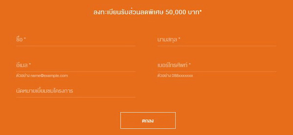 คลิกด้านล่างลงทะเบียนรับส่วนลดพิเศษ 50,000 บาท*