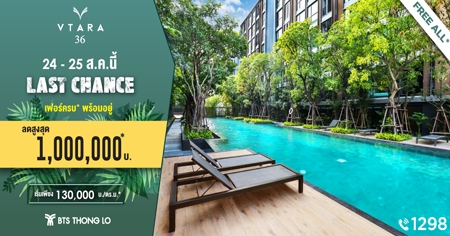 - 5 ยูนิตสุดท้าย ! ราคาขายเฉลี่ยเพียง 130,000 บาทต่อตารางเมตรเท่านั้น !!