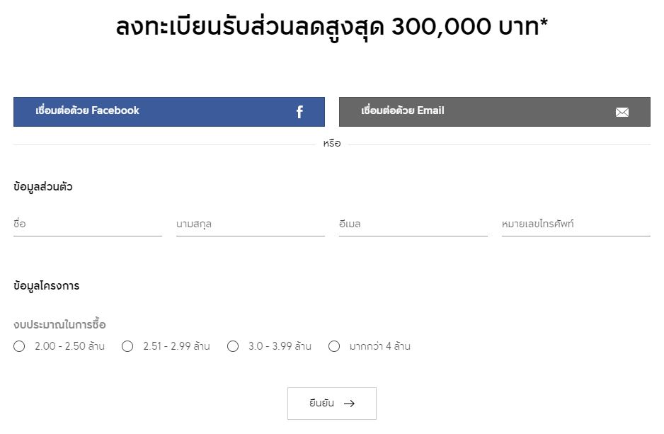 คลิกด้านล่างเพื่อลงทะเบียนรับส่วนลดสูงสุด 300,000 บาท*