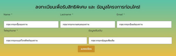 ลงทะเบียนเพื่อรับสิทธิพิเศษ และ ข้อมูลโครงการก่อนใคร!