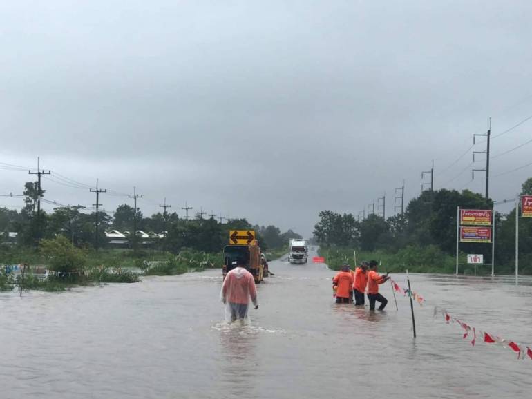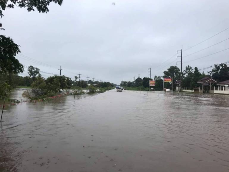 - ทางหลวงหมายเลข 212 ย้อมพัฒนา – นาโพธิ์ อ.เมืองมุกดาหาร ช่วงกม.ที่ 414 – 416 ระดับน้ำสูง 30 ซม.