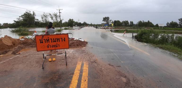 - ทางหลวงหมายเลข 232 ถนนวงแหวนรอบเมืองร้อยเอ็ด อ.เมือง ช่วงกม.ที่ 15 – 16 ระดับน้ำสูง 45 ซม.