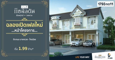 ดีแลนด์ เตรียมเปิดเฟสใหม่ ทาวน์โฮมทำเลบางกรวย - ไทรน้อย "บ้านดี เดอะ แฮมิลตัน ชัยพฤกษ์ - วงแหวน" ทาวน์โฮม อารมณ์บ้านเดี่ยว ที่อบอุ่น มีเสน่ห์ ด้วยบรรยากาศ English Style ติดถนนบางกรวย - ไทรน้อย ใกล้ MRT สถานีคลองบางไผ่ พร้อมรับโปรโมชั่นพิเศษ !! ฟรีแอร์* ฟรีผ้าม่าน* ฟรีส่วนกลาง 3 ปี* ราคาเริ่ม 1.99 ล้านบาท*
