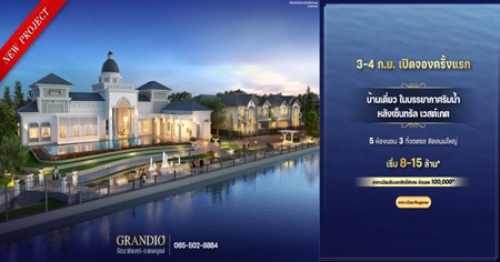 วันที่ 3- 4 ก.ย. นี้ เตรียมจอง บ้านเดี่ยว บรรยากาศริมน้ำ เตรียมพบกับโครงการใหม่ "แกรนดิโอ รัตนาธิเบศร์-ราชพฤกษ์" บ้านเดี่ยว 5 ห้องนอน 3 ที่จอดรถ ติดถนนใหญ่ "หลังเซ็นทรัล เวสต์เกต" ราคาเริ่ม 8-15 ล้านบาท*