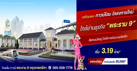 เตรียมพบโครงการใหม่ ทาวน์โฮม ใกล้ย่านธุรกิจ พระราม 9 เตรียมพบโครงการใหม่ "โกลเด้น ทาวน์ พระราม 9-กรุงเทพกรีฑา" ทาวน์โฮม สไตล์อังกฤษ ฟังก์ชั่นการใช้งานครบครัน พร้อมอลังการสโมสรส่วนกลาง บนทำเลศัดยภาพ ใกล้ย่านธุรกิจ พระราม 9 เดินทางสะดวก " ติดถนนใหญ่ ใกล้ทางด่วน + รถไฟฟ้า " ราคาเริ่ม 3.19 ล้านบาท*