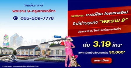 เตรียมพบ ทาวน์โฮม โครงการใหม่ ใกล้ย่านธุรกิจ พระราม 9 เตรียมพบโครงการใหม่ "โกลเด้น ทาวน์ พระราม 9-กรุงเทพกรีฑา" ทาวน์โฮม สไตล์อังกฤษ ฟังก์ชั่นการใช้งานครบครัน บนสุดยอดทำเล ใกล้ย่านธุรกิจ พระราม 9 " ติดถนนใหญ่ ใกล้ทางด่วน + รถไฟฟ้า " ราคาเริ่ม 3.19 ล้านบาท*