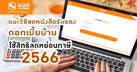 ธนาคารอาคารสงเคราะห์ (ธอส.) เพิ่มความสะดวกให้กับลูกค้าธนาคารที่ต้องการใช้สิทธิหักลดหย่อนภาษีในส่วนของดอกเบี้ยเงินกู้ยืมสินเชื่อเพื่อที่อยู่อาศัย เพื่อใช้ประกอบการยื่นแบบแสดงรายการภาษีเงินได้บุคคลธรรมดา ปีภาษี 2566 ให้สามารถดาวน์โหลดหนังสือรับรองดอกเบี้ยดังกล่าวได้แบบง่าย ๆ ด้วยตัวเองผ่าน 2 ช่องทาง