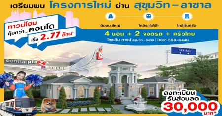 เตรียมพบ โครงการใหม่ ทาวน์โฮม ย่าน สุขุมวิท-ลาซาลโครงการใหม่ "โกลเด้น ทาวน์ สุขุมวิท-ลาซาล" คุ้มกว่า...คอนโดทาวน์โฮม 4 ห้องนอน 2 จอดรถ + ครัวไทยติดถนนใหญ่ ใกล้รถไฟฟ้า และเซ็นทรัล พลาซ่าราคาเริ่ม 2.77 ล้านบาท*