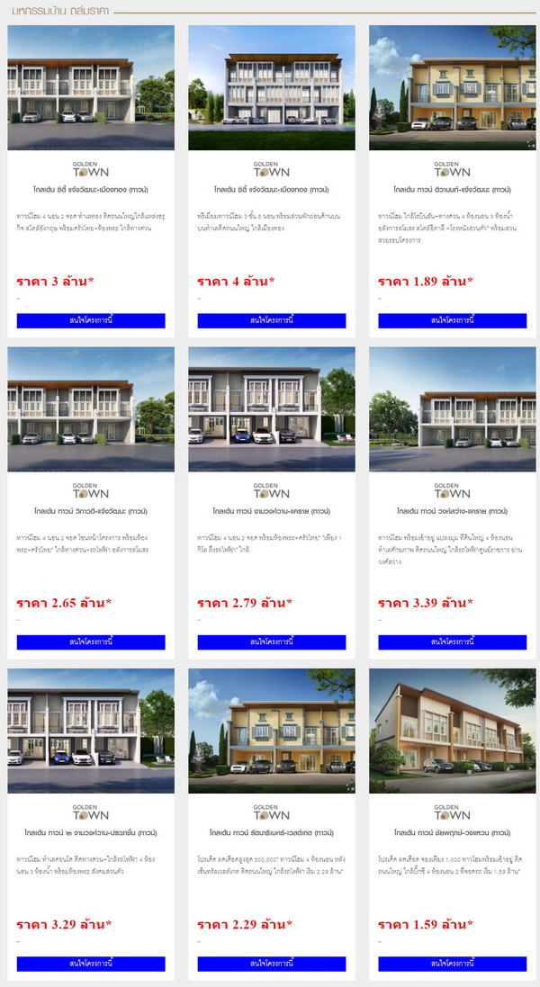 โกลเด้นแลนด์ ถล่มราคาครั้งยิ่งใหญ่สุดในรอบปี "โกลเด้นแลนด์" จองบ้าน ทาวน์โฮม พร้อมอยู่ ได้แล้ววันนี้!! " มหกรรมบ้าน ถล่มราคา ลดรับล้าน* " บนทุกทำเลคุณภาพ จากโกลเด้นแลนด์ ระยะเวลาโปรโมชั่น ตั้งแต่วันนี้ ถึง 31 ตุลาคม 2563 นี้* ราคาเริ่ม 1.59 - 10 ล้านบาท*