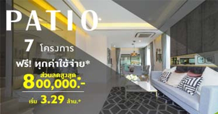 Promotion Special!! ส่วนลดสูงสุด 800,000 บาท* PATIO 7 ทำเลคุณภาพ บริษัท พฤกษา เรียบเอสเตท จำกัด จัดโปรพิเศษสุด นำทาวน์โฮม 3 ชั้น 7 ทำเลใน 7 โครงการ ทั้งหมดเป็นทาวน์โฮมใหม่ ซึ่งมีแนวคิดหลักจากคอเซปท์ ปี 2018 "PATIO ที่นี่คืออนาคต" ที่ได้รับแรงบันดาลใจจาก สไตล์ Luxury Modern Loft พื้นที่ภายในกว้างขวาง โอ่โถง เพื่อครอบครัวที่แสนอบอุ่น เลือกใช้มุมต่างๆ ในบ้านได้อย่างหลากหลาย ฟังก์ชั่นลงตัว อเนกประสงค์ พร้อมที่จอดรถ 2 คันสำหรับครอบครัวขยาย Facilities ภายในโครงการครบครัน สวนสวย, ฟิตเนส, สระว่ายน้ำ พร้อมความปลอดภัยตลอด 24 ชั่วโมง