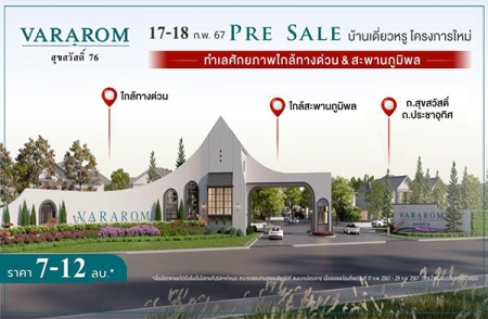 “วรารมย์ สุขสวัสดิ์ 76” มอบสิทธิพิเศษสำหรับลูกค้าที่จองบ้านภายในงาน Pre-Sale เปิดตัวโครงการฯ ในวันเสาร์และอาทิตย์ ที่ 17 - 18 กุมภาพันธ์ 2567 รับส่วนลด 100,000 บาท* ทุกหลัง