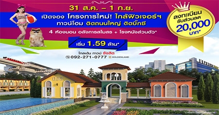 โกลเด้นแลนด์ เตรียมเปิดจอง "โกลเด้น ทาวน์ รังสิต" ทาวน์โฮม 4 ห้องนอน ติดถนนใหญ่ ติดบิ๊กซี ใกล้ฟิวเจอร์ฯ มาพร้อมอลังการสโมสร + โรงหนังส่วนตัว เปิดจอง 31 สิงหาคม - 1 กันยายน 2562 นี้ ราคาเริ่ม 1.59 ล้านบาท*