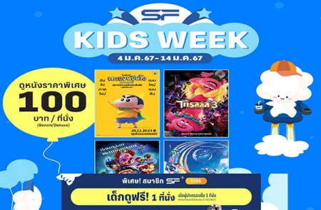 เอส เอฟ ต้อนรับวันเด็กปี 2567 กับ SF KIDS WEEK เอาใจน้องหนูและแฟนหนังครอบครัวตลอดสัปดาห์ คัดหนังดีให้ชมในราคาเริ่มต้น 100 บาท พิเศษ! สมาชิก SF+ KIDS รับสิทธิ์ชมภาพยนตร์ฟรี ระหว่างวันที่ 4-14 มกราคม 2567 ที่โรงภาพยนตร์ในเครือ เอส เอฟ ทุกสาขา
