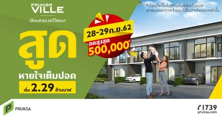 พฤกษาวิลล์ จัดโปร สูดหายใจเต็มปอด ทาวน์โฮมทำเลใกล้รถไฟฟ้าสายสีน้ำเงิน "พฤกษาวิลล์ เลียบคลองทวีวัฒนา" ทาวน์โฮม 2 ชั้น สไตล์ Zen บนทำเลถนนเพชรเกษม ใกล้รถไฟฟ้าสายสีน้ำเงิน พร้อมสิ่งอำนวยความสะดวกภายในโครงการครบครัน พร้อมรับส่วนลดสูงสุด 500,000 บาท* พบกัน 28 - 29 กันยายน 2562 นี้ ราคาเริ่ม 2.29 ล้านบาท*