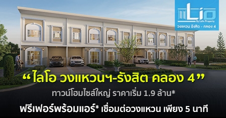 โครงการ ไลโอ วงแหวนฯ-รังสิต คลอง 4 เป็นโครงการที่พร้อมตอบโจทย์การอยู่อาศัย สัมผัสความงาม ผสมผสานความ Luxury ได้อย่างลงตัวการออกแบบที่มีกลิ่นอายฝรั่งเศส ที่จะทำให้ทุกวันของที่นี่สงบและน่าอยู่ ที่สุดกับประสบการณ์ความเชี่ยวชาญ ตลอด 30 กว่าปีที่ผ่านมา ความใส่ใจในทุกๆ รายละเอียด ที่เป็นเอกลักษณ์เฉพาะของ ลลิล พร็อพเพอร์ตี้ บ้านที่ปลูกบนความตั้งใจที่ดี