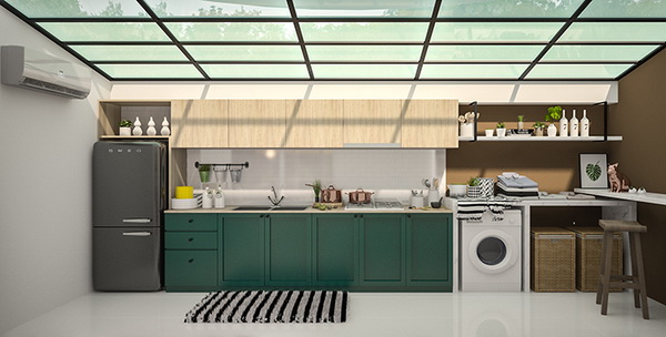 - Air Ventilation พัดลมดูดอากาศทำหน้าที่ดูดอากาศร้อนที่ลอยขึ้นมาเพื่อเตรียมระบายออกที่บริเวณใต้หลังคา