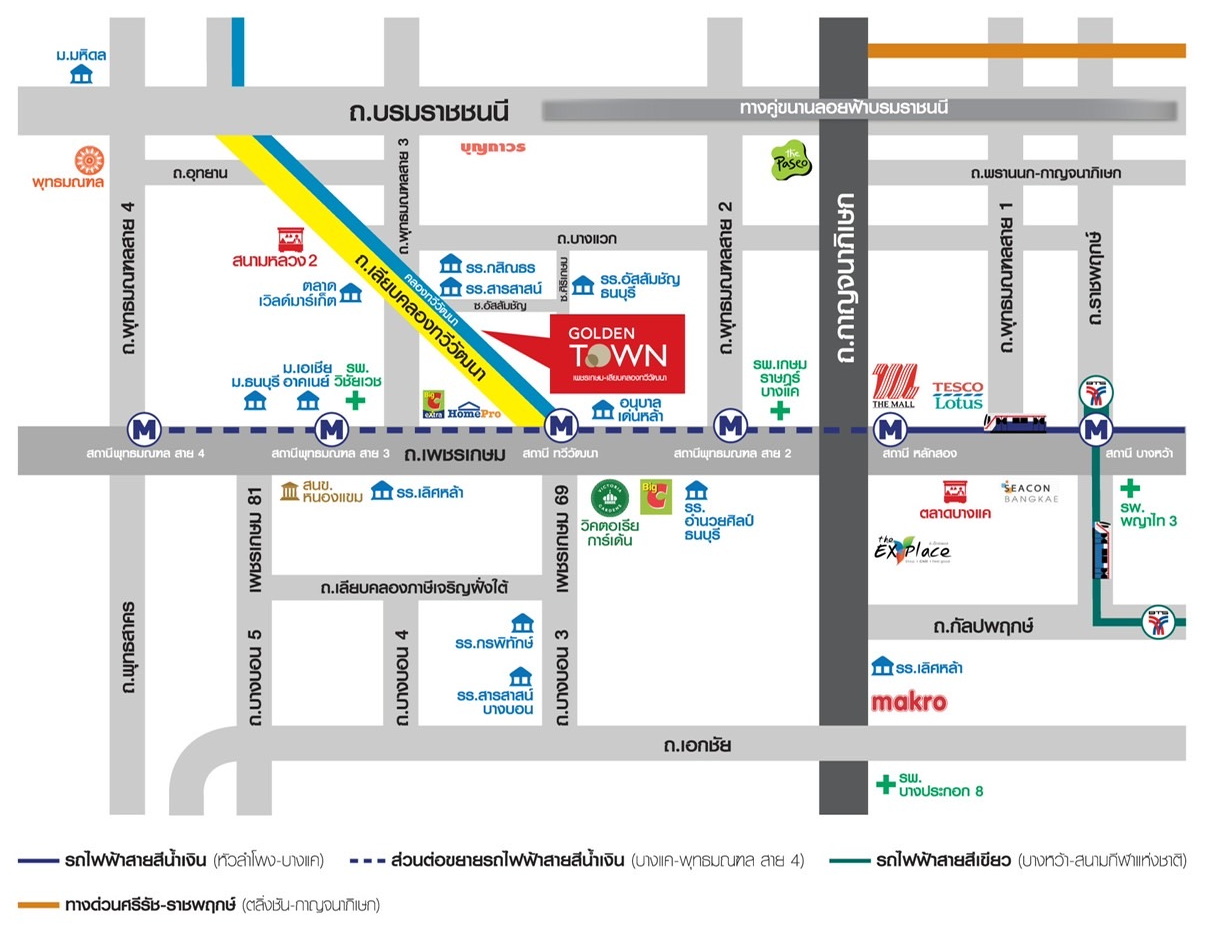 แผนที่โกลเด้น ทาวน์ เพชรเกษม เลียบคลองทวีวัฒนา