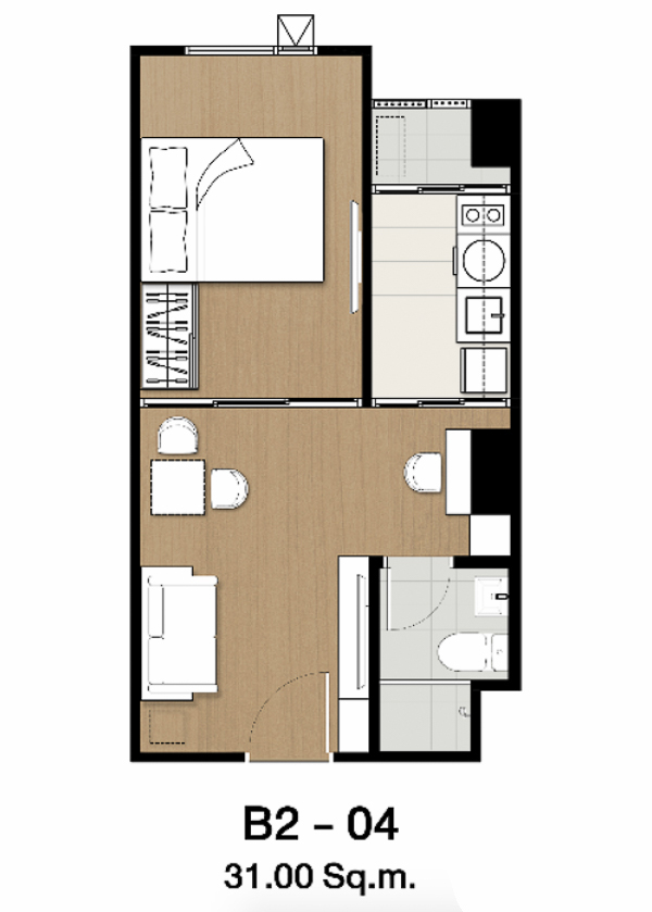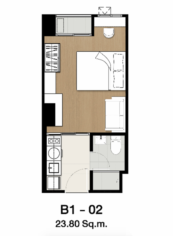 - 1 Bedroom ขนาด 23.80 ตร.ม.