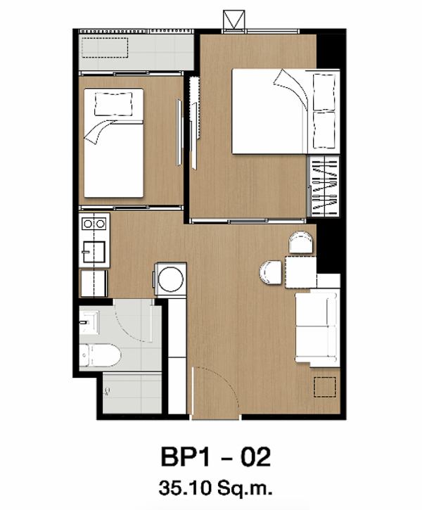 - 1 Bedroom Plus ขนาด 35.10 ตร.ม.