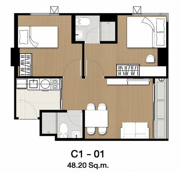 - 2 Bedroom ขนาด 48.2 ตร.ม.