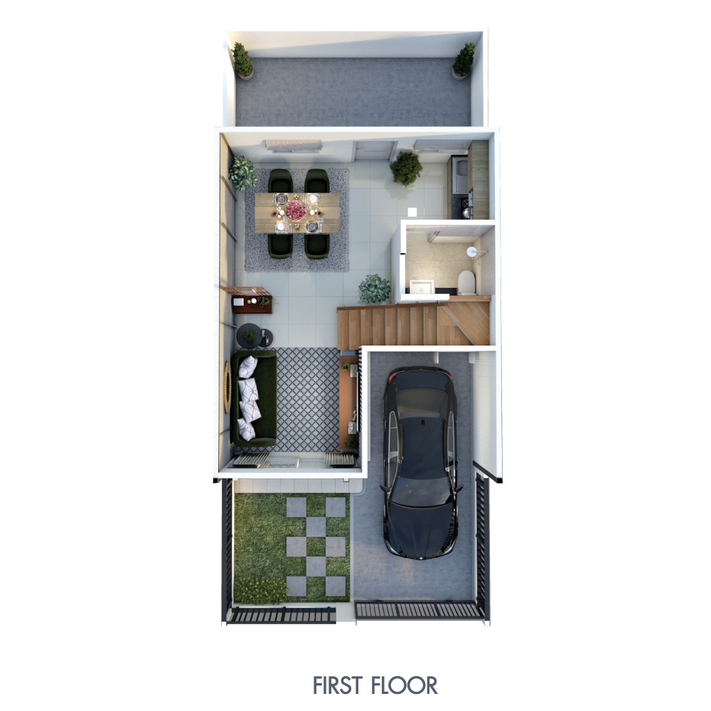 แบบบ้าน CHER | ทาวน์โฮม 2 ชั้น พื้นที่ใช้สอย 105 ตร.ม. (หน้ากว้าง 5.7 ม.)