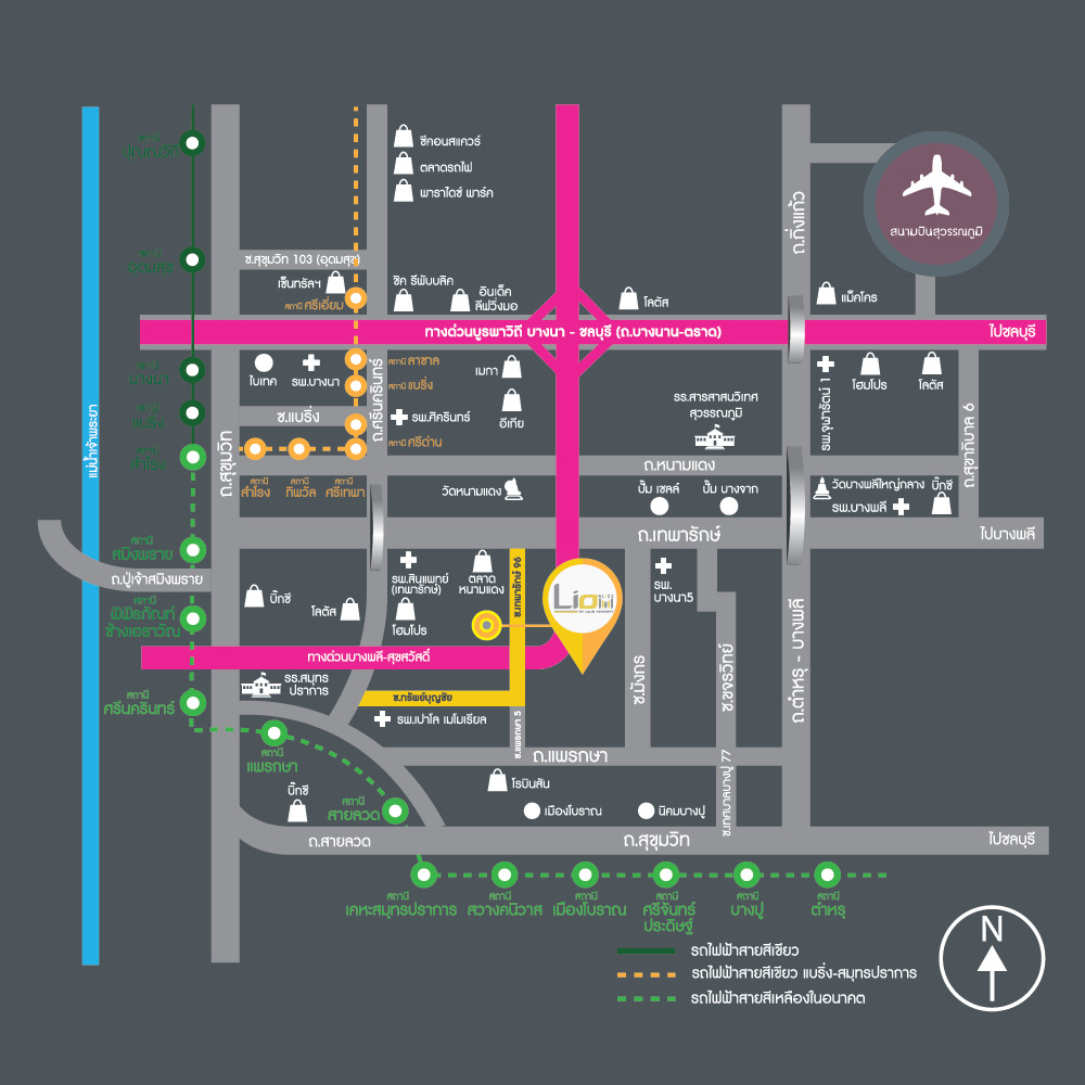 เชื่อมต่อการเดินทางเข้าสู่ใจกลางเมืองด้วย 2 เส้นทางหลัก ศรีนครินทร์ และ เทพารักษ์ โอบล้อมด้วยรถไฟฟ้า 2 สาย สายสีเขียว และ สายสีเหลือง ใกล้จุดขึ้น-ลง ทางด่วนบางพลี-สุขสวัสดิ์ บนทำเลใกล้แหล่งชุมชน และสิ่งอำนวยความสะดวกครบครัน