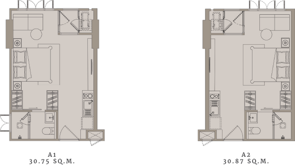 Studio – A1 30.75 ตร.ม. / Studio – A2 30.87 ตร.ม.