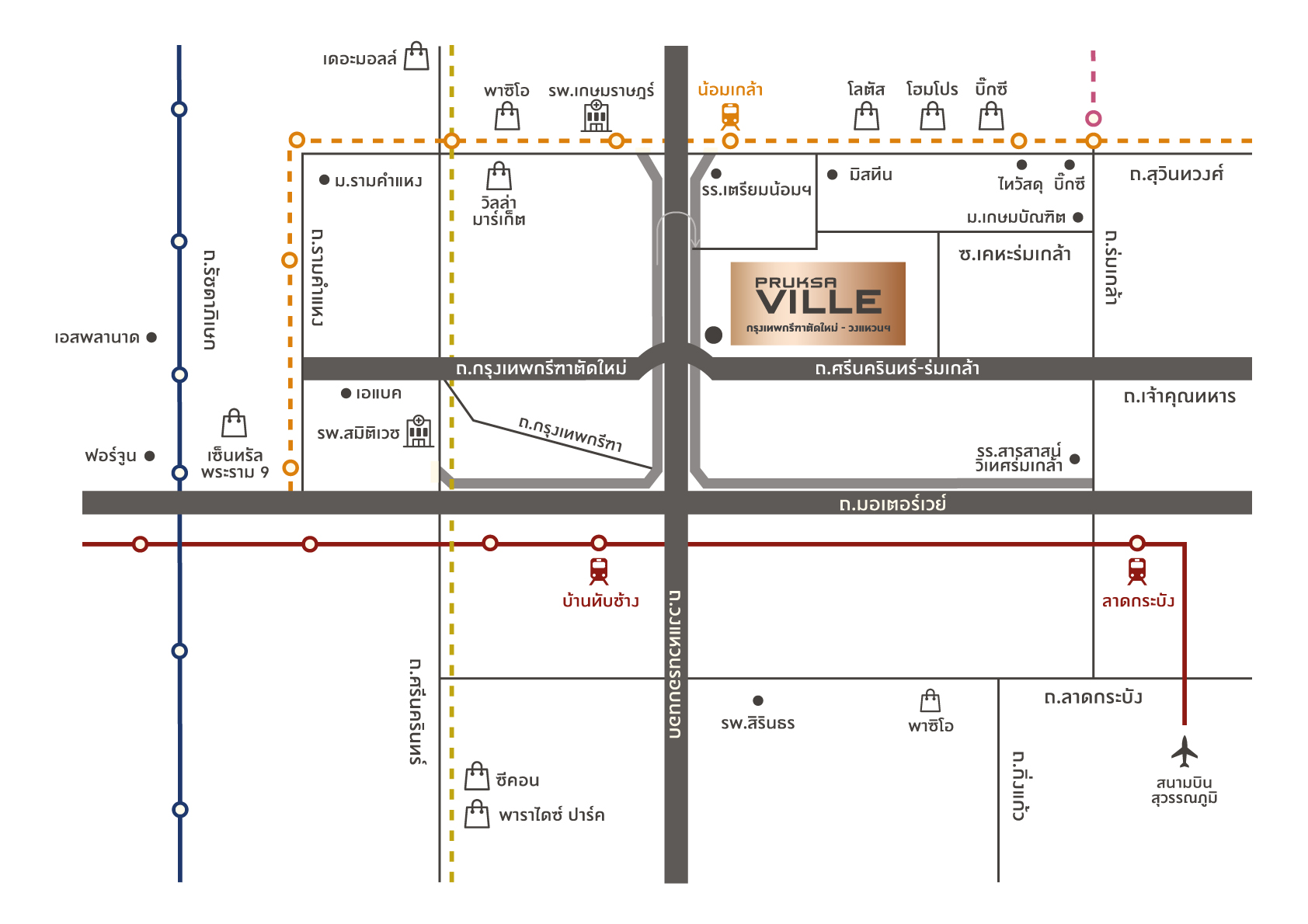 แผนที่โครงการ พฤกษาวิลล์ กรุงเทพกรีฑาตัดใหม่ - วงแหวนฯ