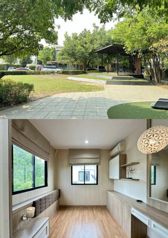 MRT MuangThongThani 3.7km. BoonJaren Market MuangThongThani 550m. 2-storey townhouse Tiwanon Chaengwattana furnished built-in on Tiwanon Rd. 29sq.w. 229sq.m. Hampton International School Chaeng Watthana 6.3km. 3bed 2bath 28,999B-M convenient transportation Tiwanon Road. Chaeng Watthana Suitable for use as an office or residence.