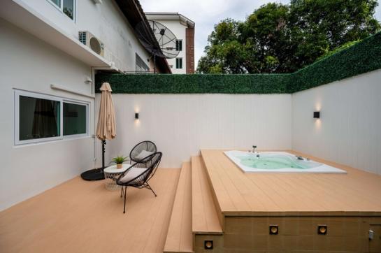 -สวนหลังบ้านขนาดใหญ่ พร้อมอ่างจากุซซี่ และพื้นที่พักผ่อน