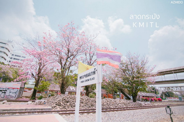 อีกหนึ่งจุดชมวิวดอกชมพูพันทิพย์ ที่ต้องไม่พลาดแน่นอน เห็นภาพรีวิว สวยงามขนาดนี้ต้องเร่งตามไปดูกันหน่อย กับดอกชมพูพันทิพย์ริมทางรถไฟสถานีลาดกระบัง ไม่ใช่รถไฟแอร์พอร์ตลิ้งค์นะครับ เป็นรถไฟธรรมดานี่แหละครับ นี่ดูแล้วนึกคล้ายว่าอยู่สถานีรถไฟในญี่ปุ่น สองข้างทางในเดือนเมษายนนี้เต็มไปด้วยชมพูพันทิพย์ที่หล่นร่วงอยู่ตามพื้น และรางรถไฟ สวยงามมาก โดยเฉพาะริมทางสถาบันเทคโนโลยีพระจอมเกล้าเจ้าคุณทหารลาดกระบังนี่สวยมากครับ